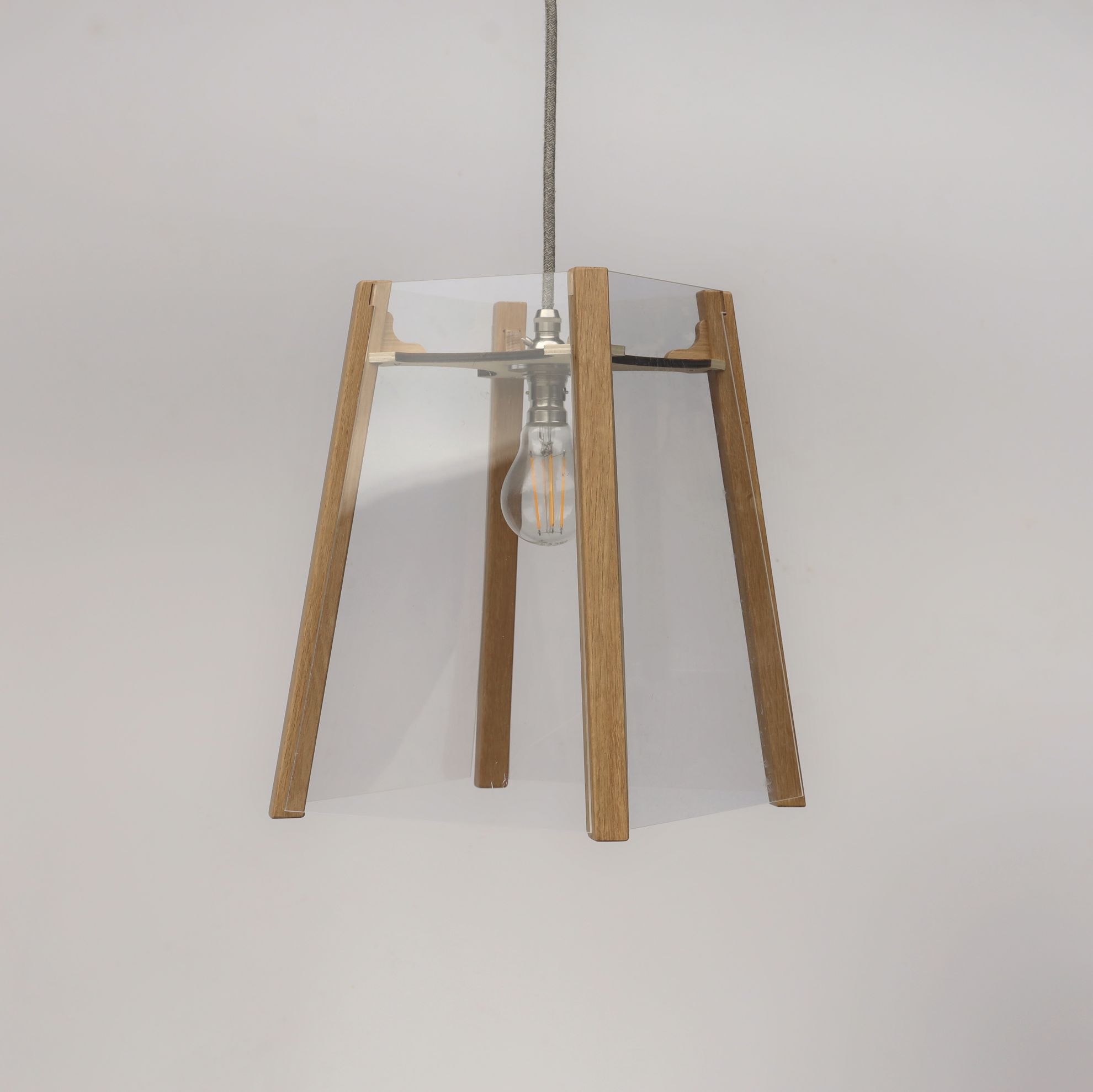 Design: Clear PanelsIf you are unsure about the material/colour we offer a free sampling service before you buy, please contact us with your request.Want a change of decor? No problem update your lantern panels to a new design - Extra panels can be purchased for this oak pendant, please see our other designs in the panel design section of our website.